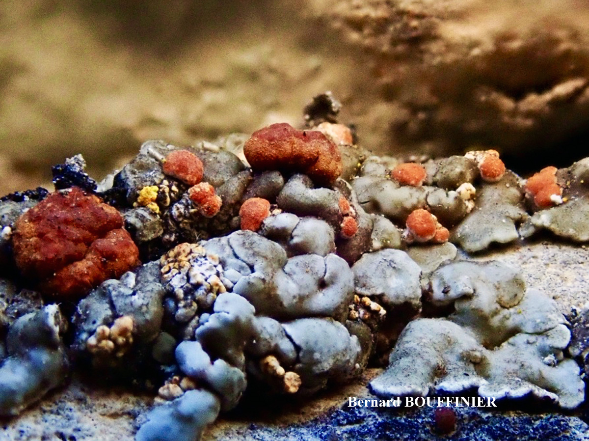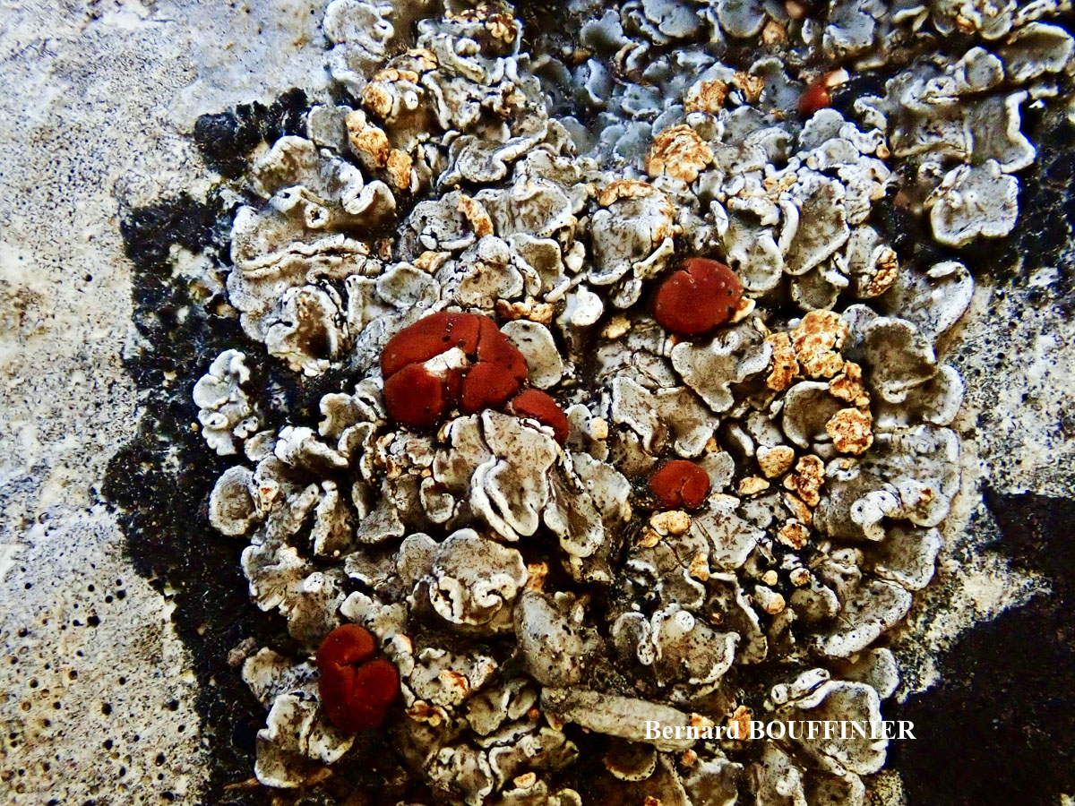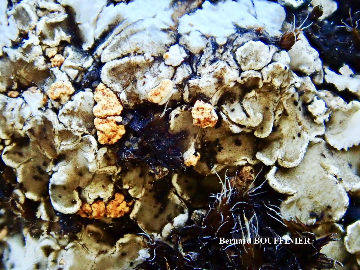 Squamulous thallus formed of squamules arranged in small rosettes 3-5 cm in diameter, squamules 1-3 mm, flat then convex with a slightly lobulated and uptourned margin.