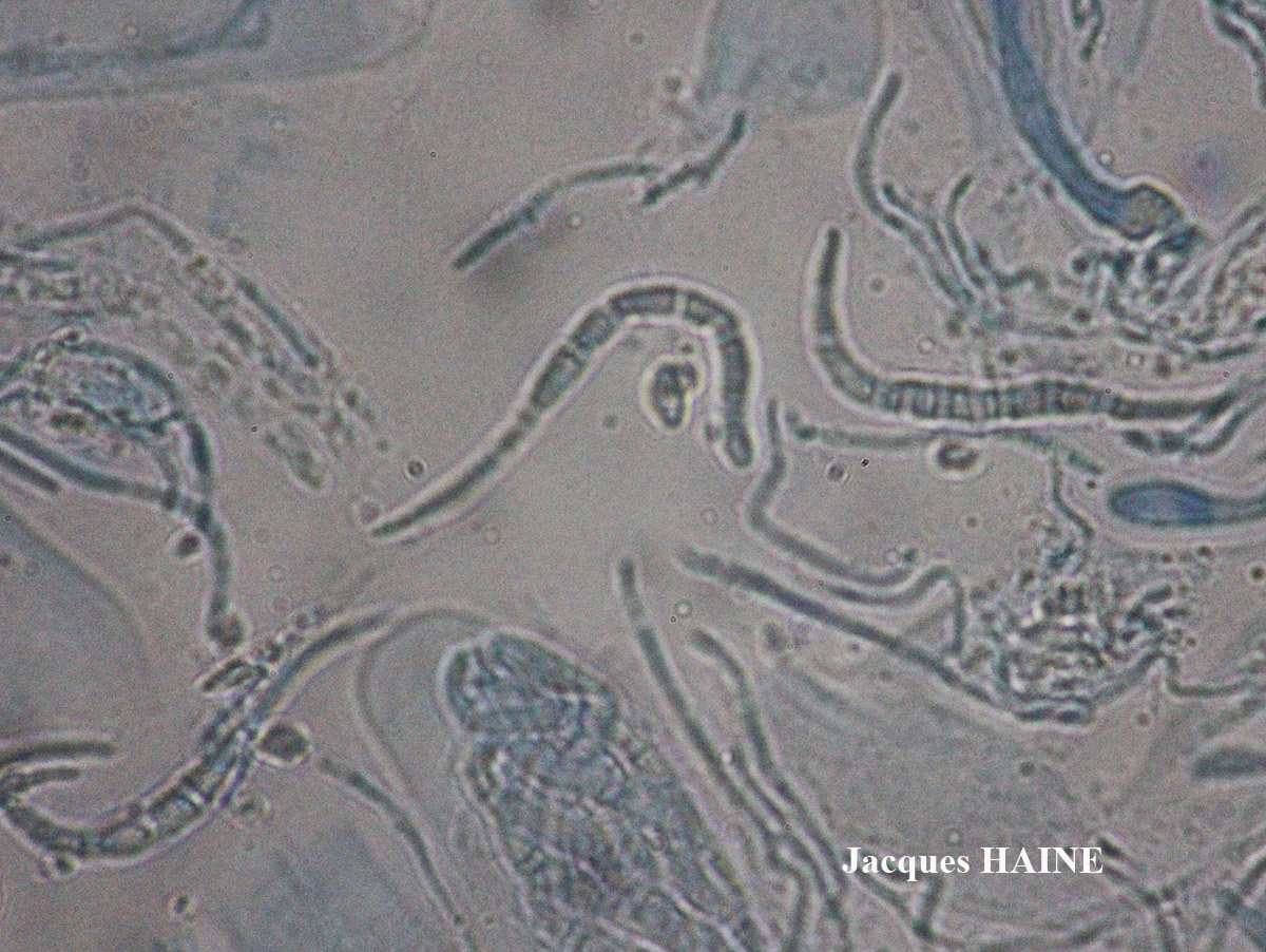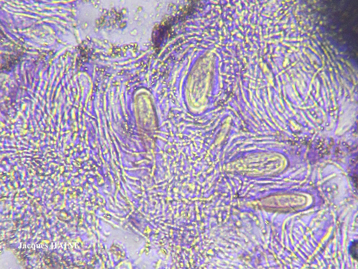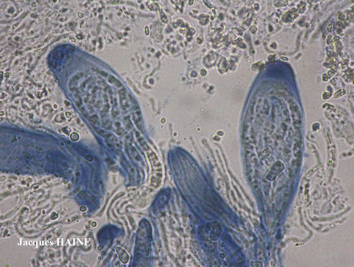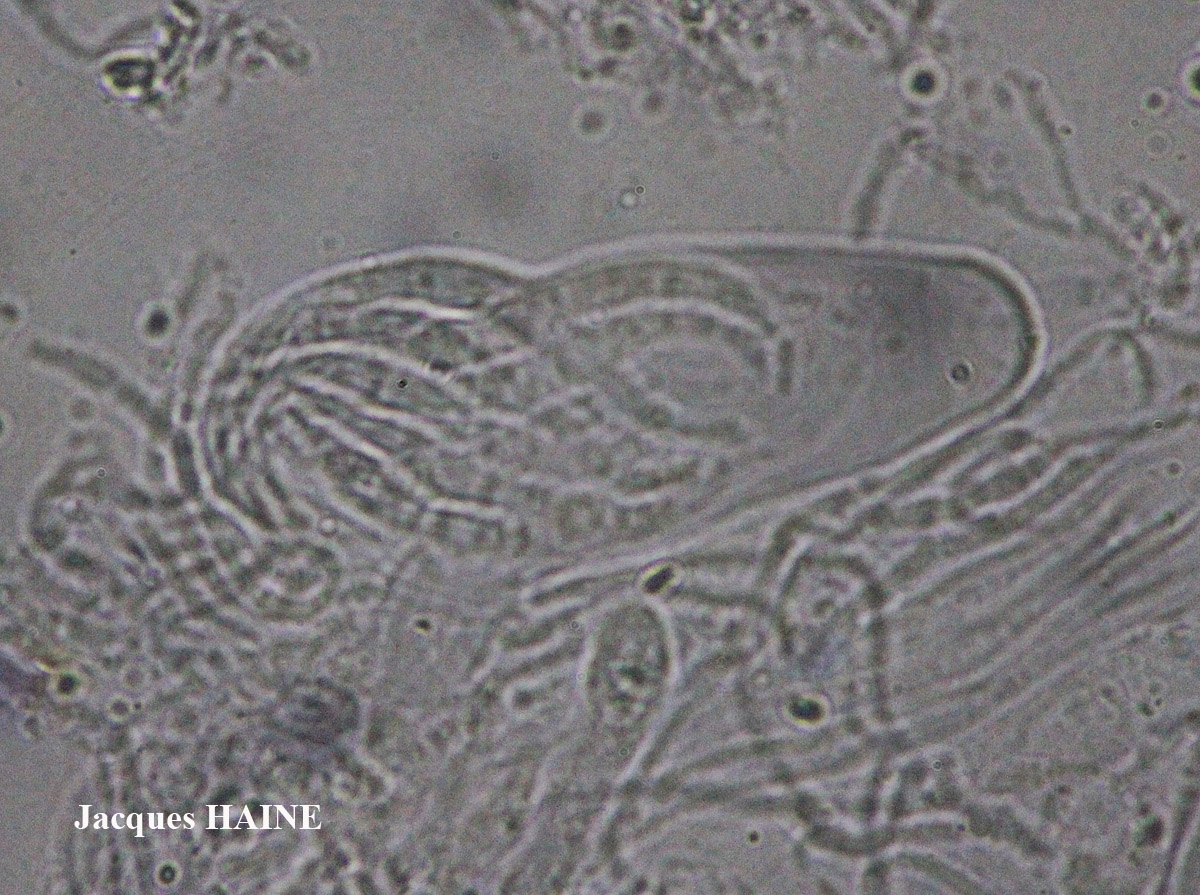 Thallus crustose, well delimited, rather thick, surrounded with large areoles more or less rounded with a warty surface, yellowish white, pale yellowish for the form with usnic acid: forma ventosa and whitish for the form without usnic acid forma subfestiva. Apothecia usually quite abundant, lecanorins, 1-4 mm in diameter, initially flat disc sometimes bulging in old age, not pruinose, bright red, scarlet red, blood red, rim sharp, sinuous, may be reduced in old age, concolorous to the thallus. Spores colorless, with one rounded end and another pointed, 3-7 septate, 40-50 x 4-5 µm. Presence of pycnidia with black ostioles, pycnospores 5-10 x 1 µm. Photobiont: Trébouxia. Cortex and medulla: K + yellow, KC +/- yellow, P + orange but there are K- and P- chemoforms. Mountain species coming on non-calcareous rocks very exposed, in particular to the wind.