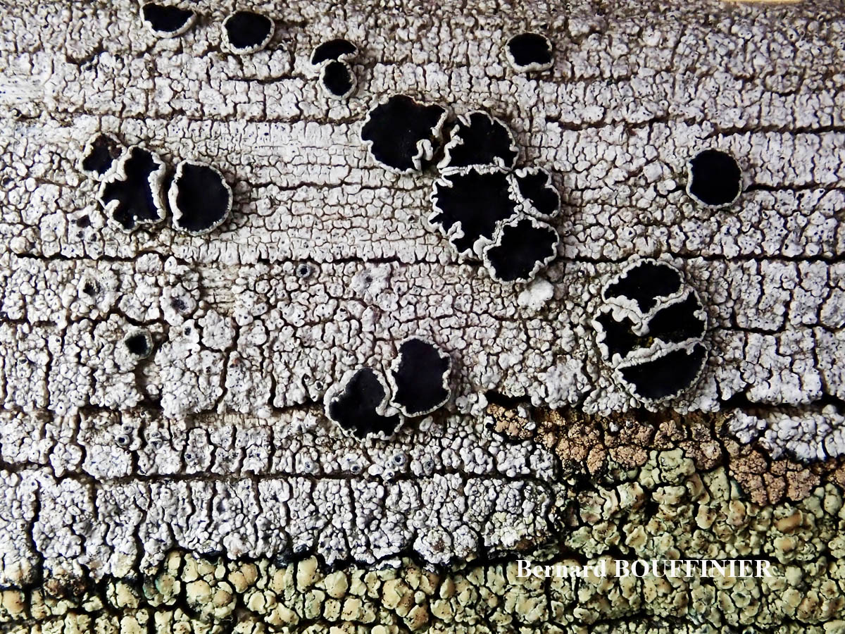Tephromela atra forme lignicole maritime.