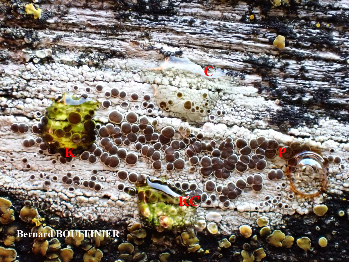 Lecanora pulicaris forme lignicole maritime Coupe apothécie écrasée KOH Morgat 9